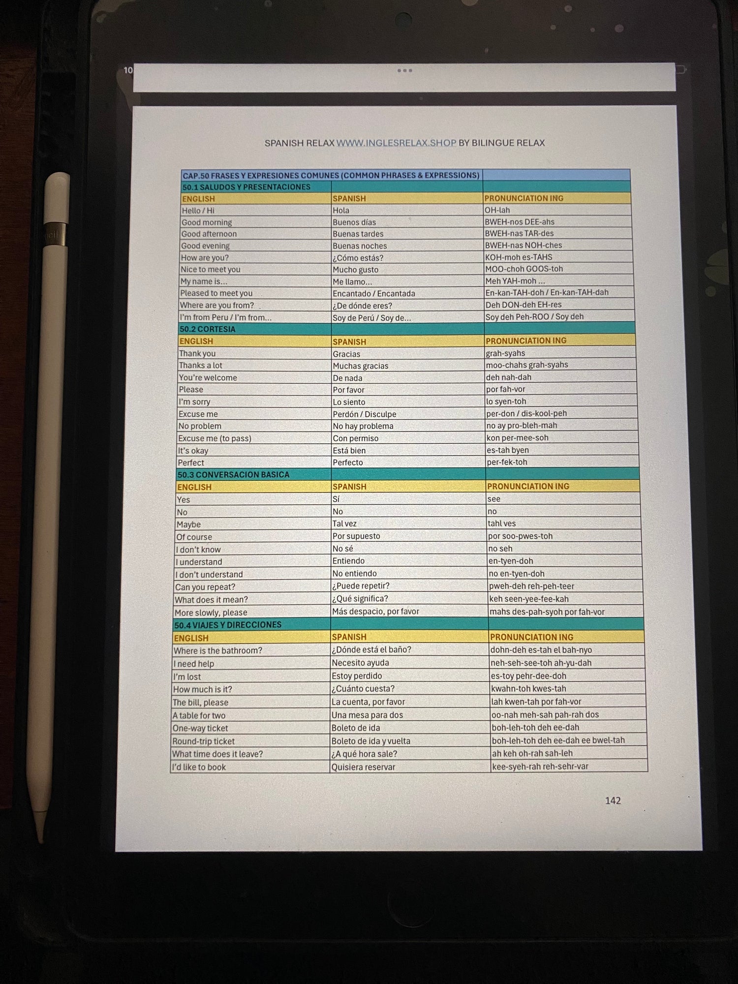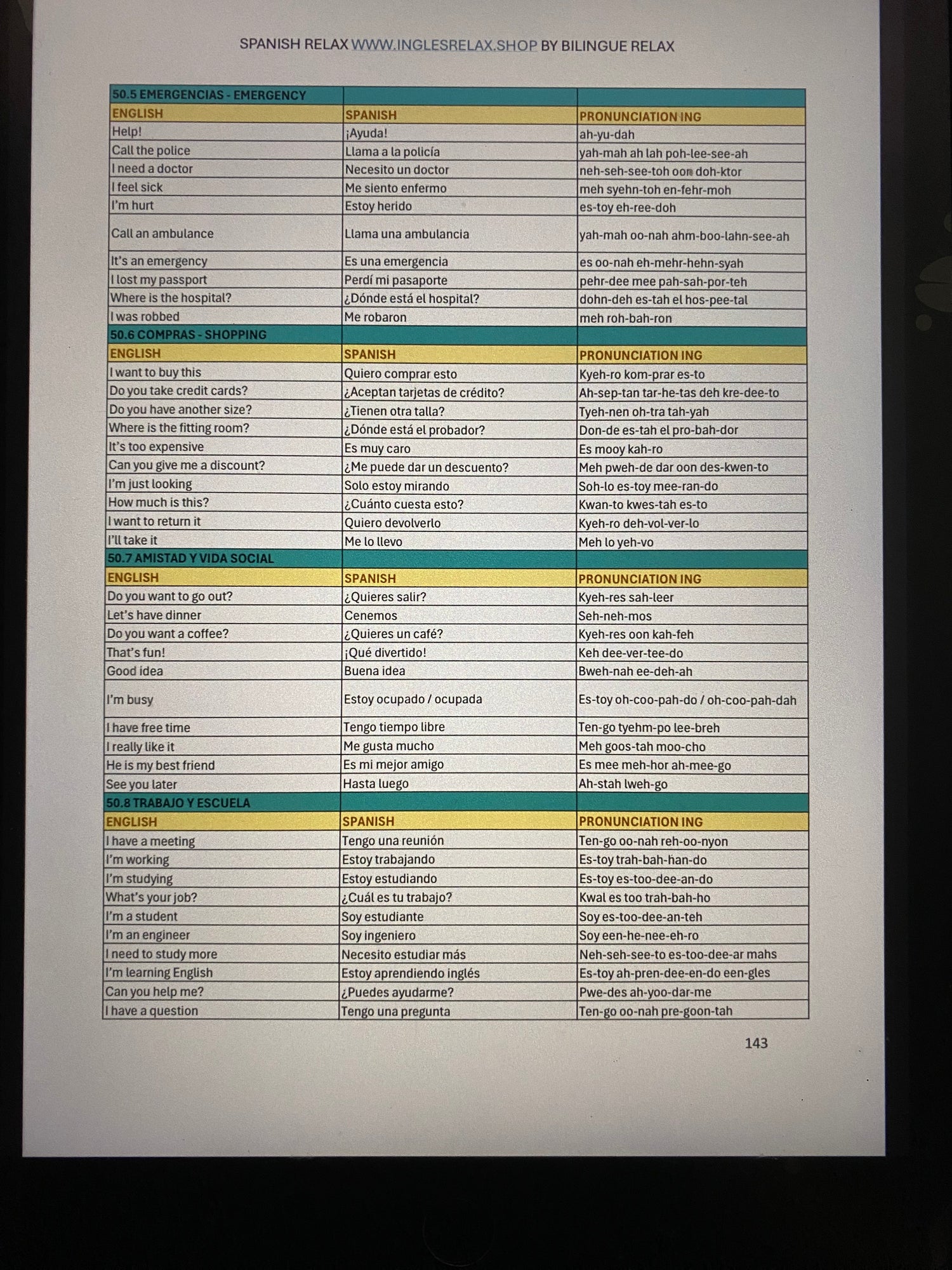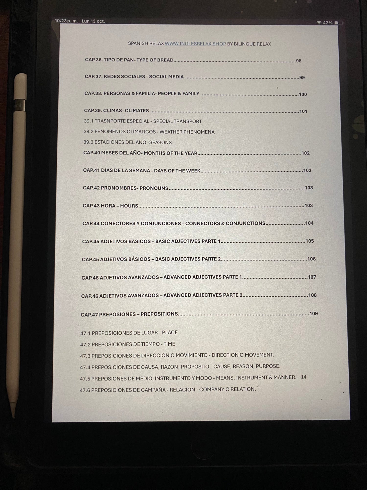 - Chapters 40–52: Verbs, conversation phrases, essential vocabulary, and real-life situations (work, school, travel, emotions, and more).